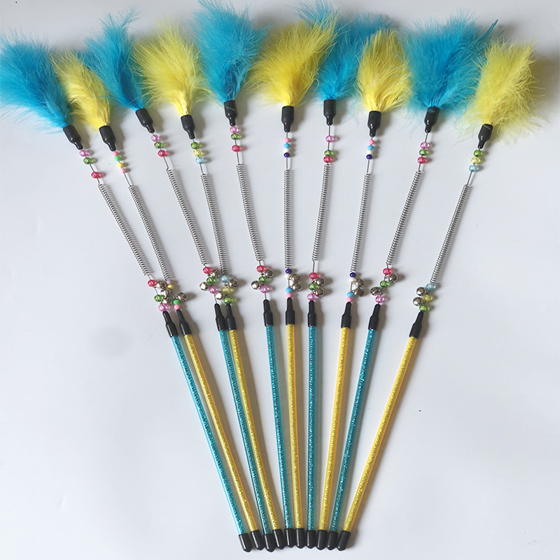 猫の棒の猫のおもちゃの鈴は猫のカラーの羽の猫のおもちゃを笑わせます。