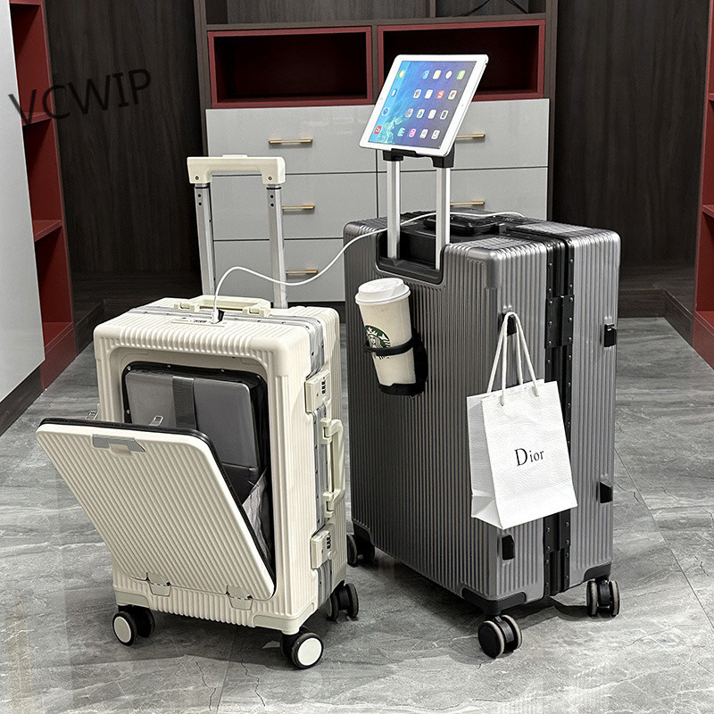 アルミフレームフロントオープン多機能スーツケーススーツケーススーツケース男性女性ユニバーサルホイール24ビジネス旅行搭乗ケース2ryh