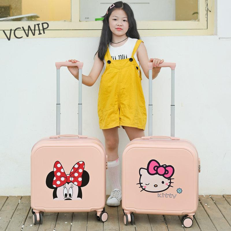 新しい子供のスーツケースの女性のかわいい小型の夏のキャンプの漫画のkitty18インチの学生のスーツケースの旅行ryh