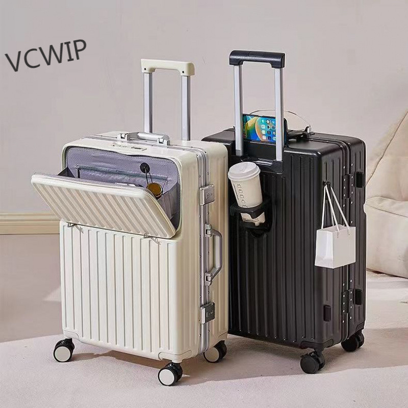 スーツケース多機能フロントオープンアルミフレームスーツケース男座ることができます暗号箱女ryh