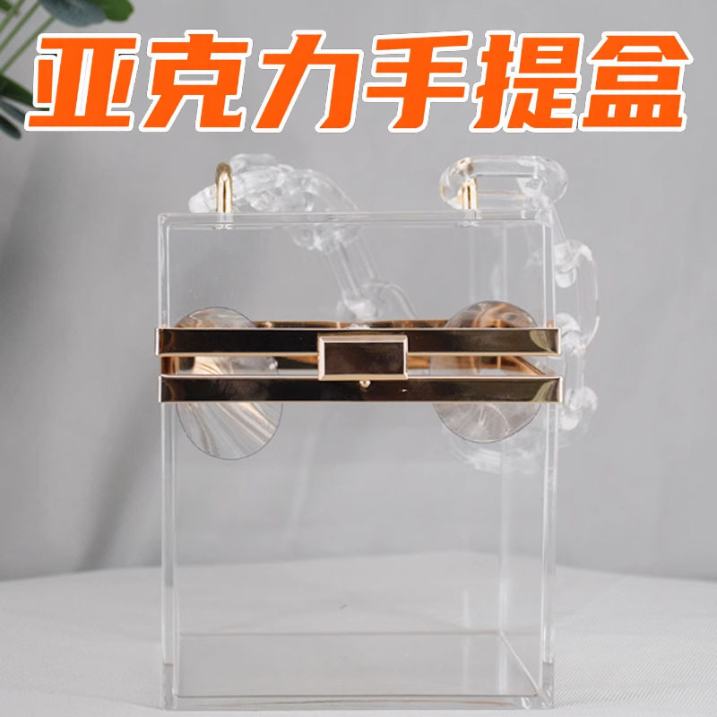 インターネットセレブと同じスタイルのアクリルクリップボックス小さなバッグ女性の新しいファッション透明ゼリーチェーンポータブル化粧品バッグ