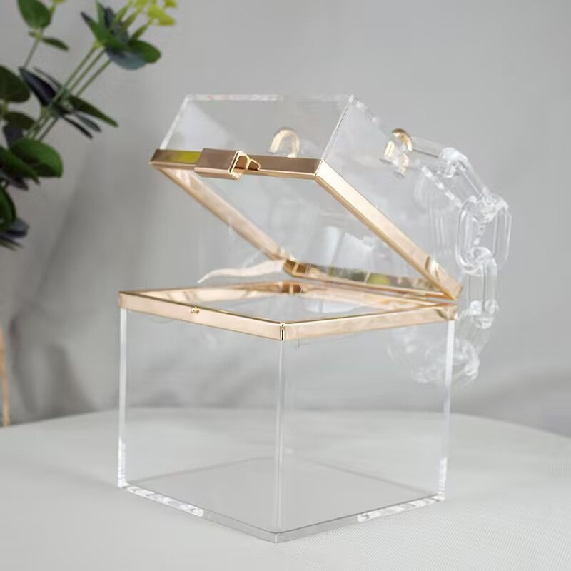 正方形のアクリルボックスポータブル正方形の化粧品バッグサマービーチニッチクロスボディチェーンバッグガールギフトボックス