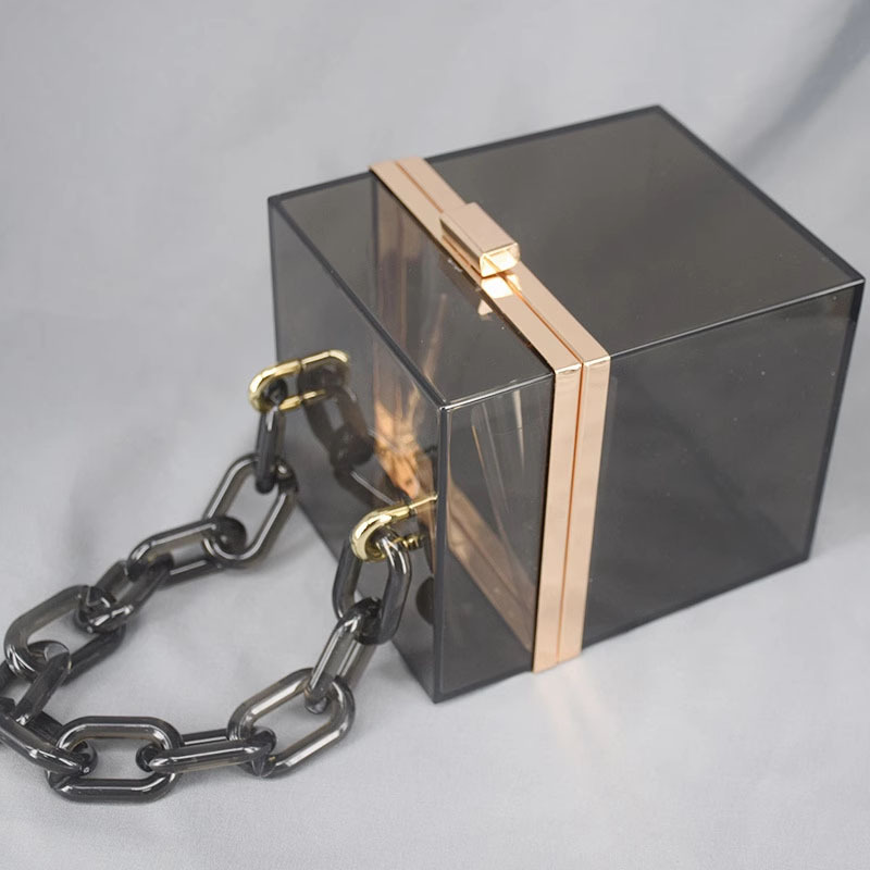 アクリル透明長方形ボックス女性のヨーロッパとアメリカのトレンディな樹脂チェーンゼリーバッグクロスボディハンドヘルド小さなバッグ収納ボックス