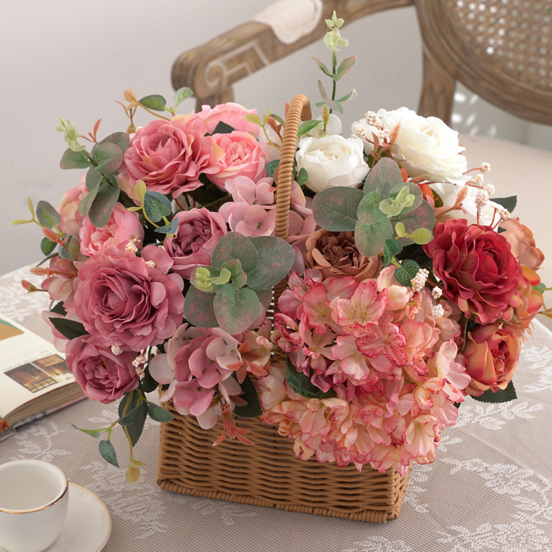 ヨーロッパ式の包みの芯の牡丹の高級なシミュレーションの花の卸売りの結婚祝いの装飾の道はホテルのデスクトップの多頭の牡丹を引きます。