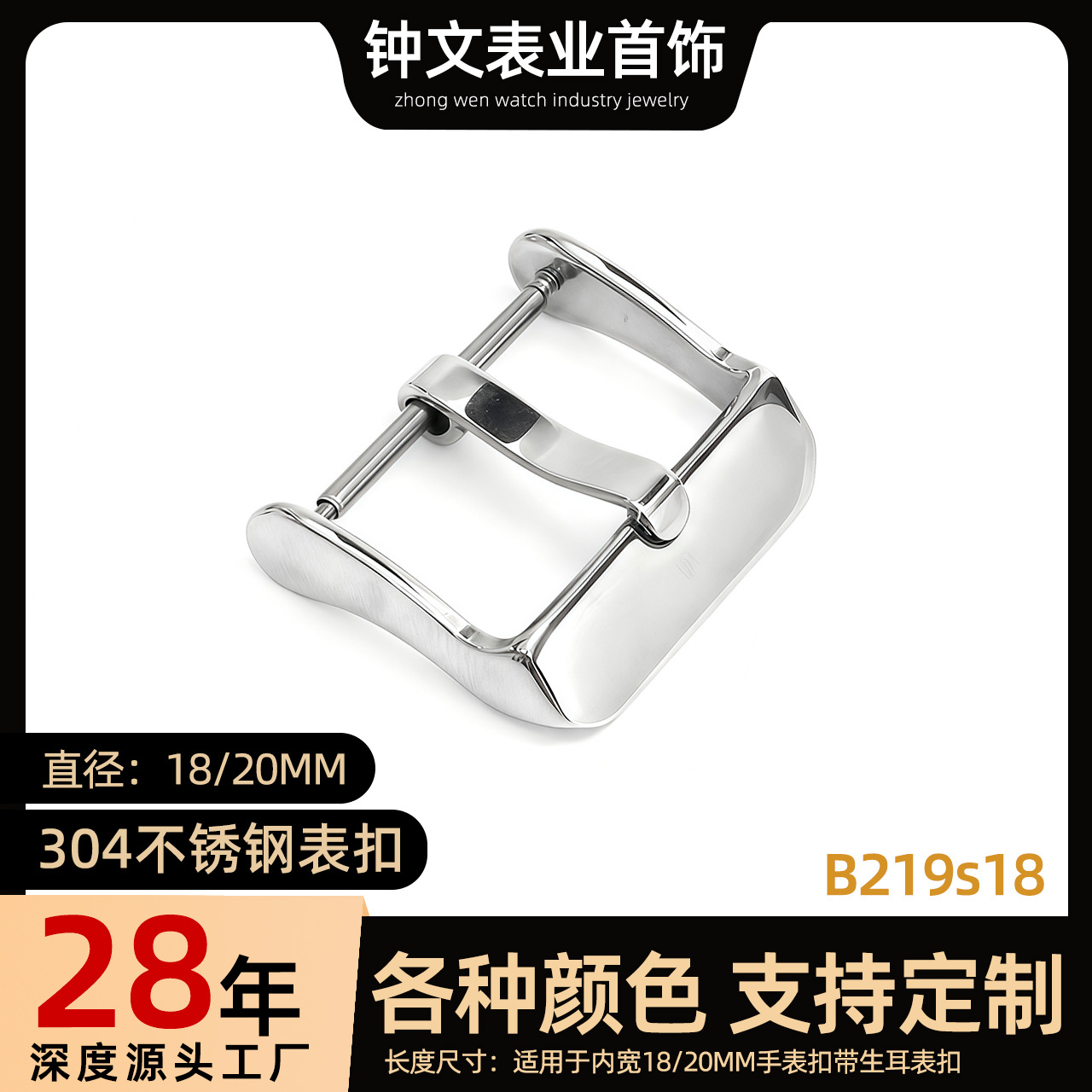 工場卸売時計部品304ステンレス鋼ソリッド時計バックルステンレス鋼時計バンドバックルヘッド時計バックルピンバックル