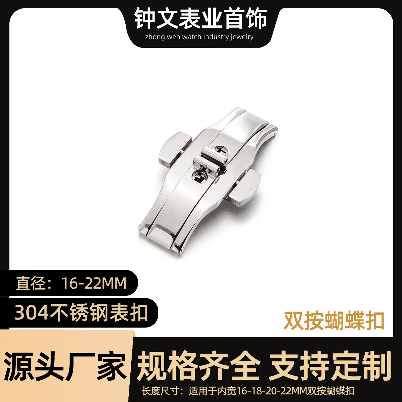 ステンレス鋼ダブルプレスバタフライバックルステンレス鋼時計ストラップバックルダブルオープン折りたたみタングステン鋼時計バックル時計アクセサリーバックル在庫あり