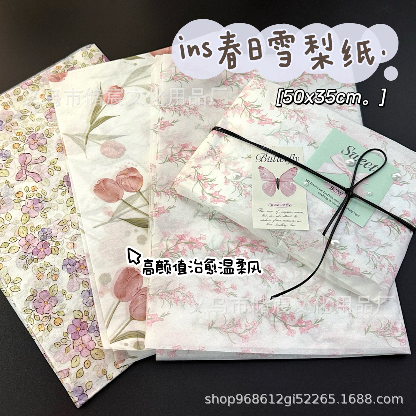 Ins風春日雪梨紙高颜値優し系カード包装飾り紙花プレゼント包装紙