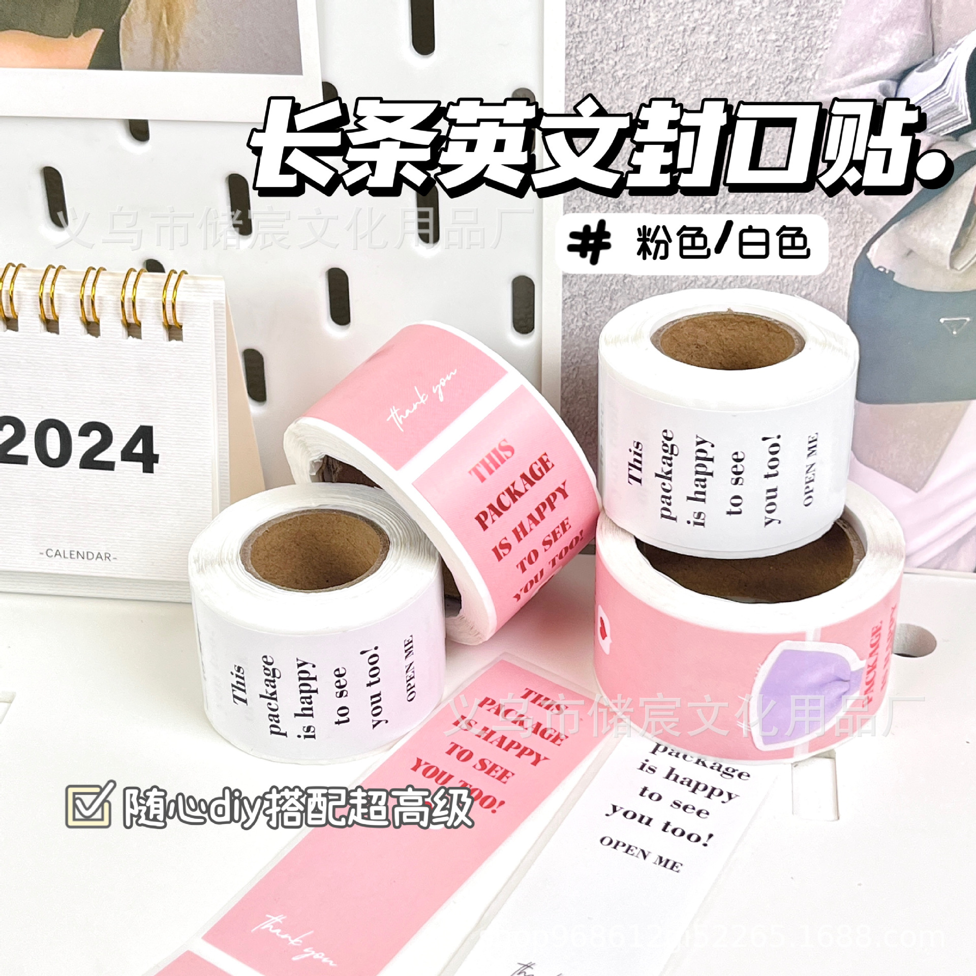 Ins風ピンクの長いシールはカードの包装に必要な材料を貼り付けます。飛行機の箱のシールは100枚/巻を貼ります。