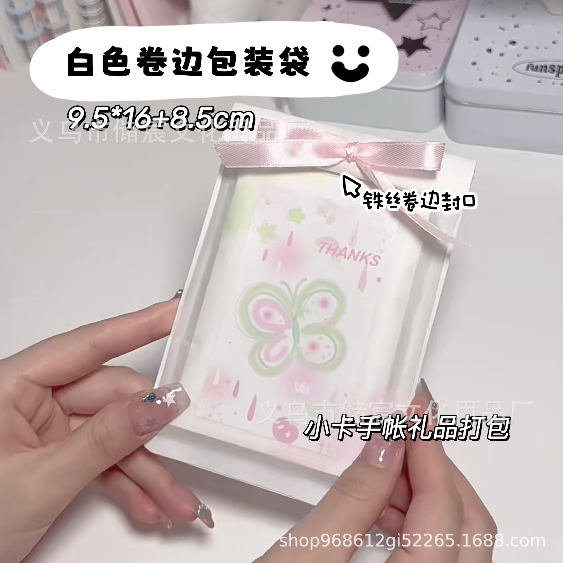 Ins風白綿紙巻き縁熱封袋氷パン小カード出カード包装平ポケット手帳包装ギフトバッグ