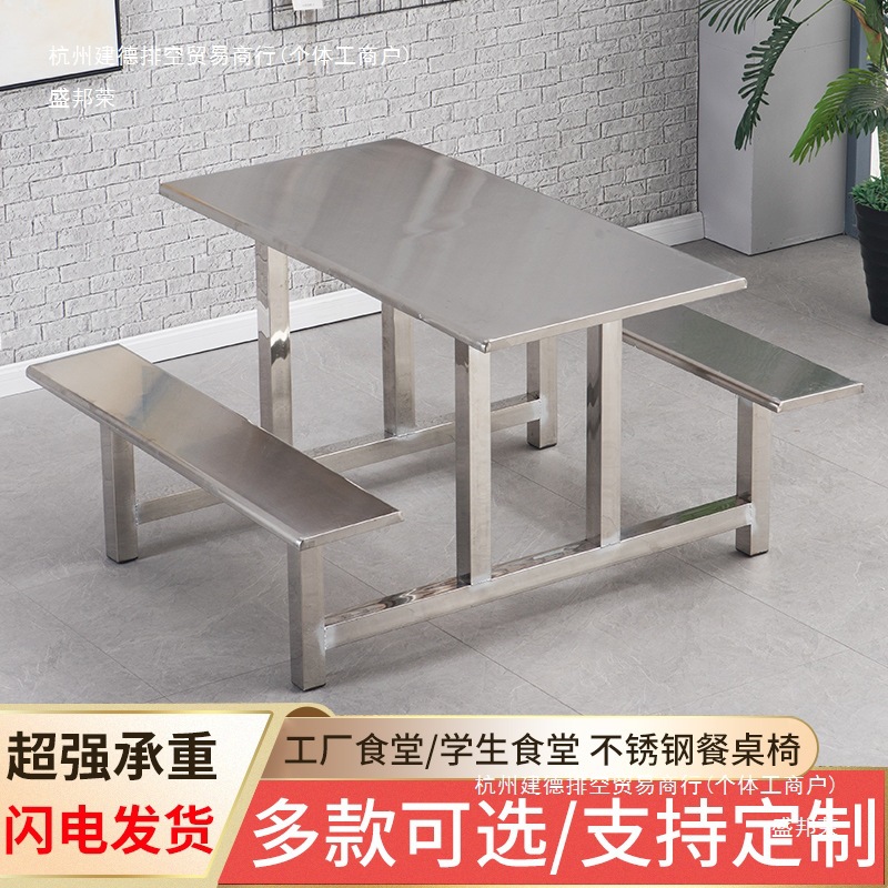 従業員用ダイニングテーブルと椅子の組み合わせ、ステンレス製のダイニングテーブルと椅子、工場、学校の食堂、食堂、コンビネーション
