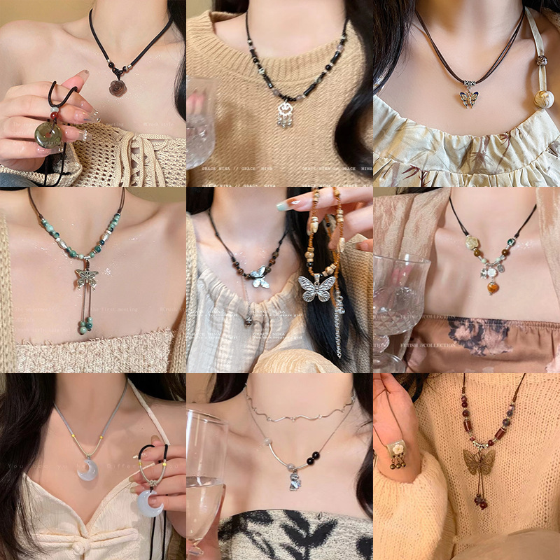 新中国式禅意民族風蝶ネックレス女性国潮シンプル復古ビーズ鎖鎖鎖鎖飾り