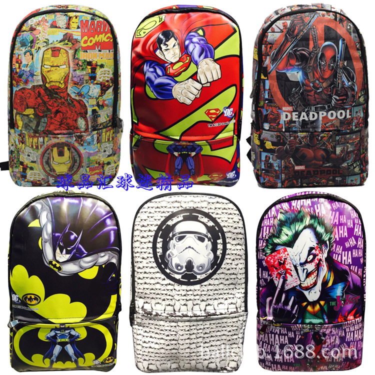 漫威アイアンマンアメリカ隊長スーパーマンスパイダーマンアベンジャーズリュックサック学生カバン