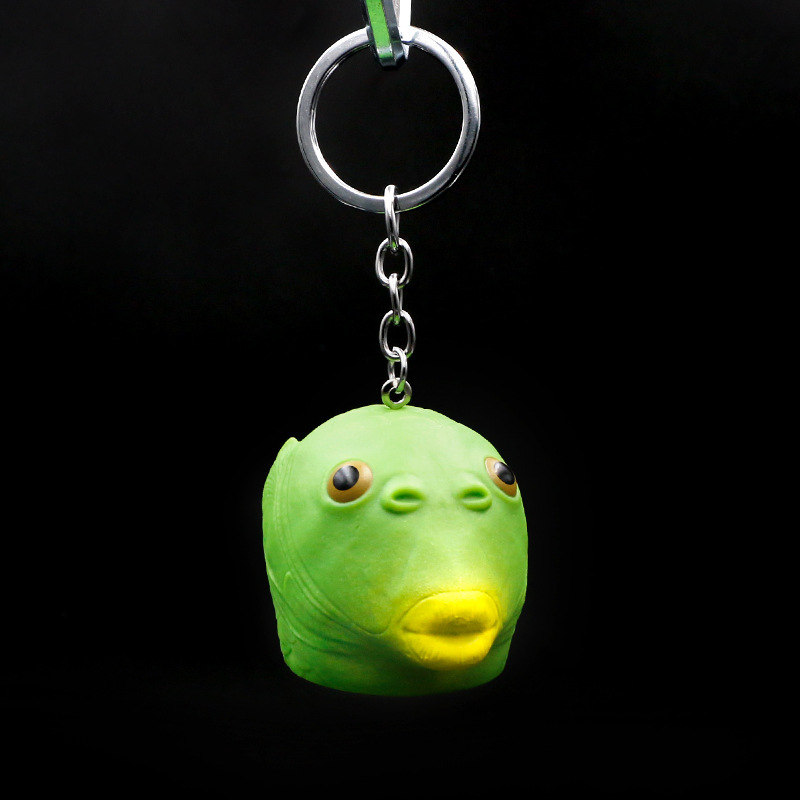 砂の彫刻のネットの赤い震える音の緑の魚の頭は奇妙な魚のマスクの頭をかぶせてアイデアのキーホルダーを掛けます。