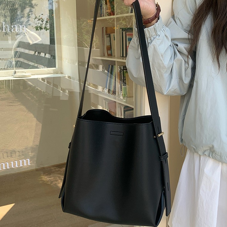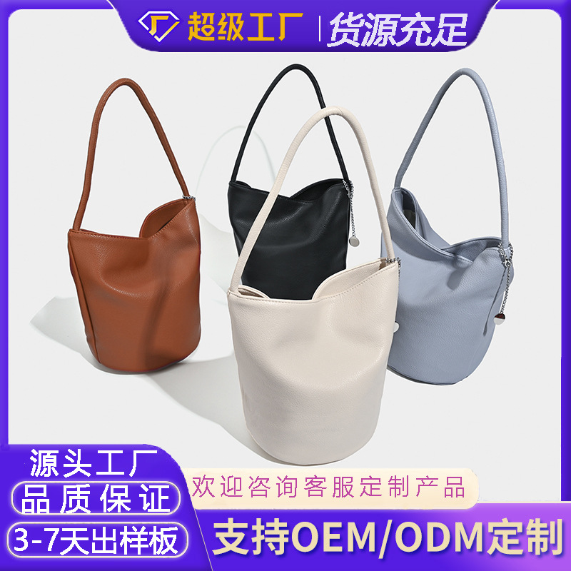 2025 韓国版トレンディなソフトポータブルバケットバッグシンプルなデイリー大容量バッグテクスチャーショルダーバッグ女性用