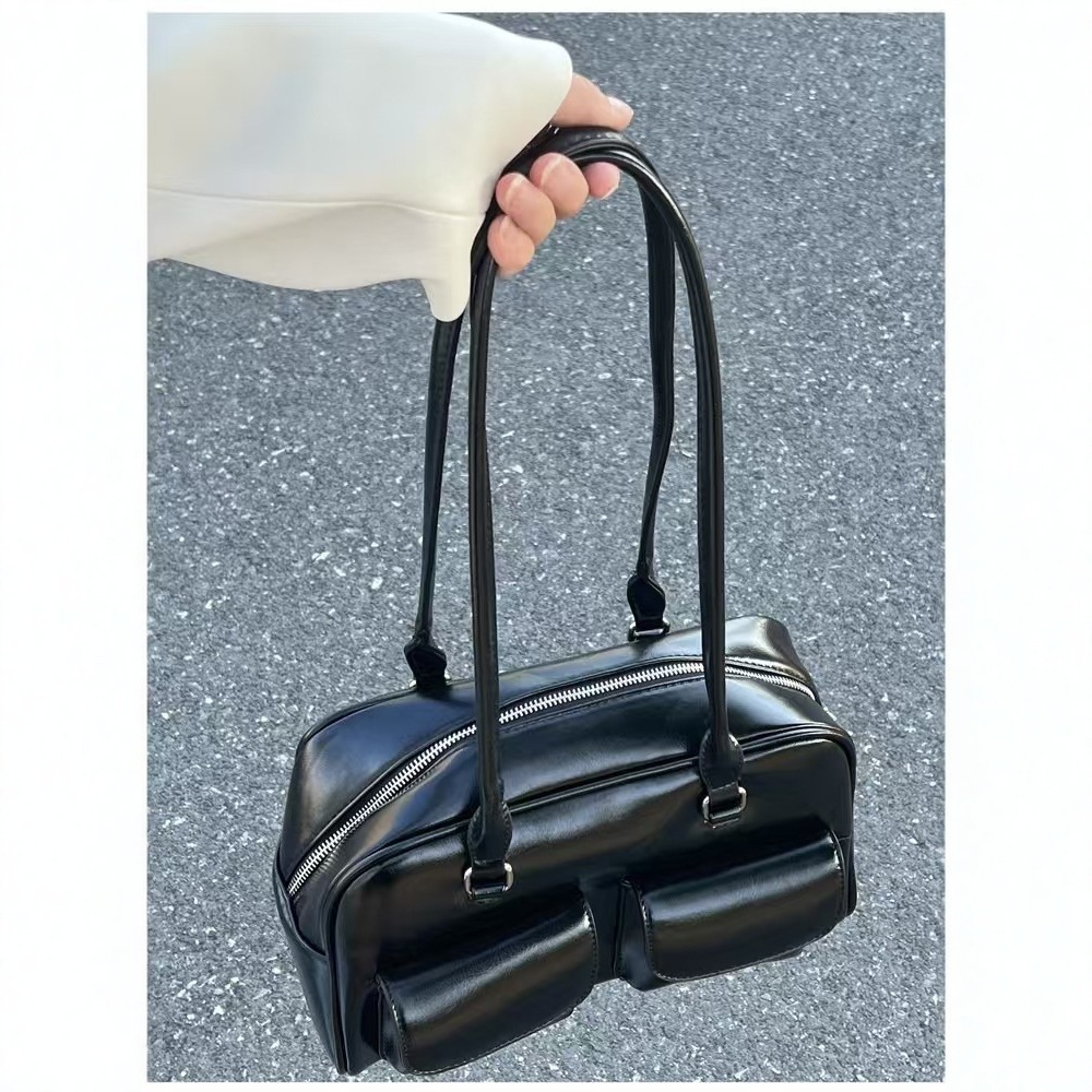 韓国版シンプルで個性的なおしゃれなジッパーポケットpu皮トートバッグ通勤大容量ショルダーバッグ