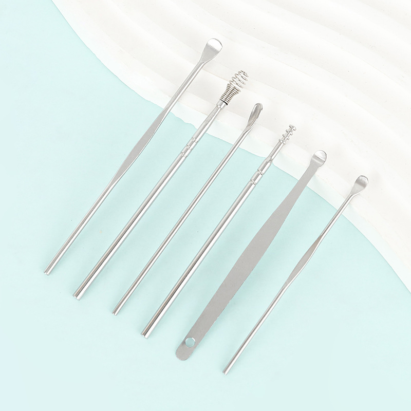 創意的に耳を掘るスプーン6点セットの携帯ケースの耳を掘るセットの家庭用大人用スパイラルスプリング耳スプーン