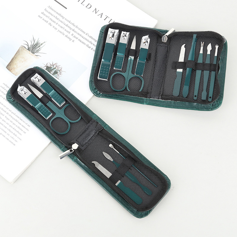 ジッパーバッグ9点セット爪切り黒墨緑6点セット爪切りセット美容ネイルツール