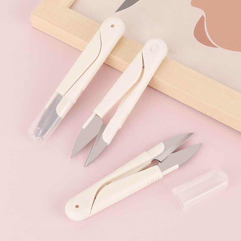 家庭用の裁縫の小さいはさみの十字の刺繍の糸の頭はステンレスの釣り糸を切って白い蓋のu型のスプリングのはさみを切ります。