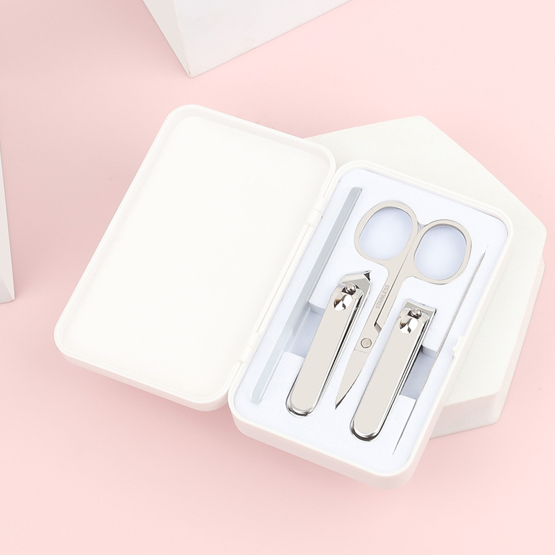 新商品の箱入り4点セットの丸い爪切りセットの鋭利な爪切りの爪切りの4点セットのロゴがあります。