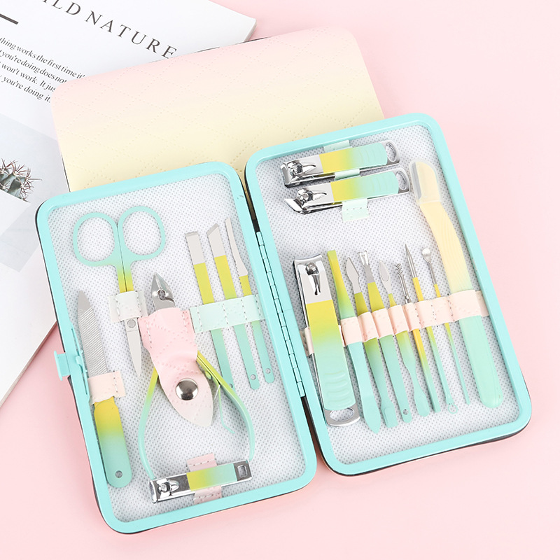 グラデーションカラー 18 ピース爪切りセット、カラフルな爪切り、眉毛トリマー、マニキュアツールのフルセット、ポータブル爪切り
