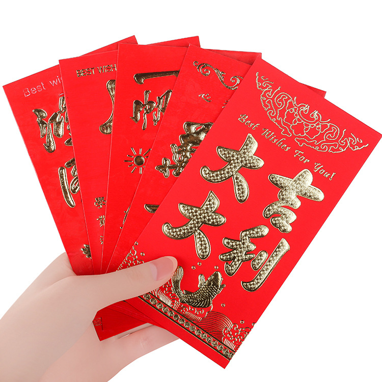6個の箔押し硬紙赤包新年旧正月誕生日圧歳利事封結婚祝いの字福字千元紅包