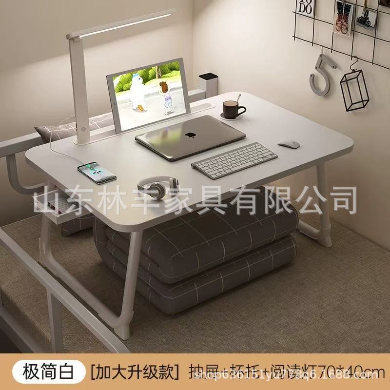 ベッド上の小さなテーブル、ライト付き、折りたたみコンピューターテーブル、読書ベッドサイドランプ、寮の怠惰なデスク、出窓、学生学習テーブル
