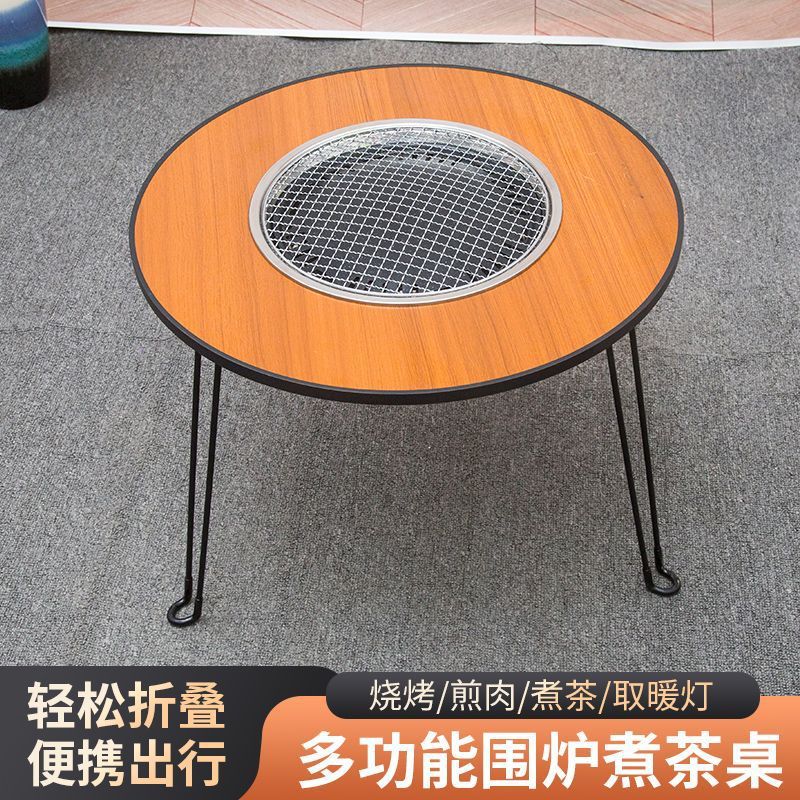 焚き火台付きお茶作り・バーベキュー一体型テーブル アウトドアキャンプ用バーベキューテーブル 家庭用無煙火鉄板 ポータブル折りたたみ式火鍋テーブル