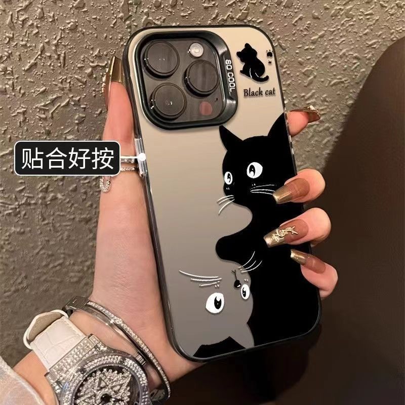 かわいい黒猫猫角適用リンゴ15pro # max携帯ケース14/13かわいい12pro高級xr/xsモデル