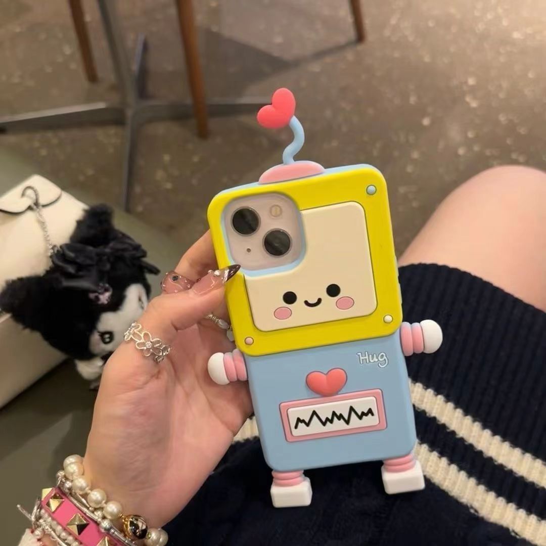 立体かわいいロボットはiphone14promaxリンゴ15携帯電話ケース12の新型シリコンゴム14proを適用している