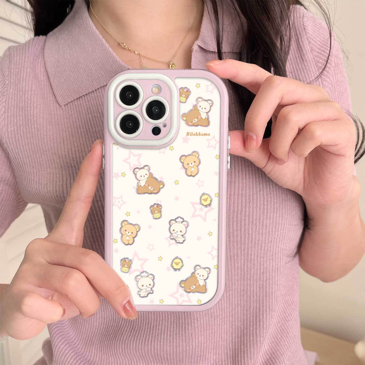 ピンクのリラックマ Apple 15 携帯電話 iphone16promax 携帯電話ケース 1213 Huawei Honor 落下防止に適しています
