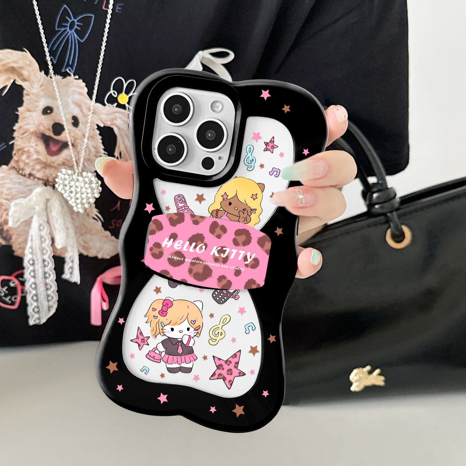 ブラックハローキティ Apple 15 携帯電話 iphone16promax 携帯電話ケース 1213 Huawei Honor 落下防止