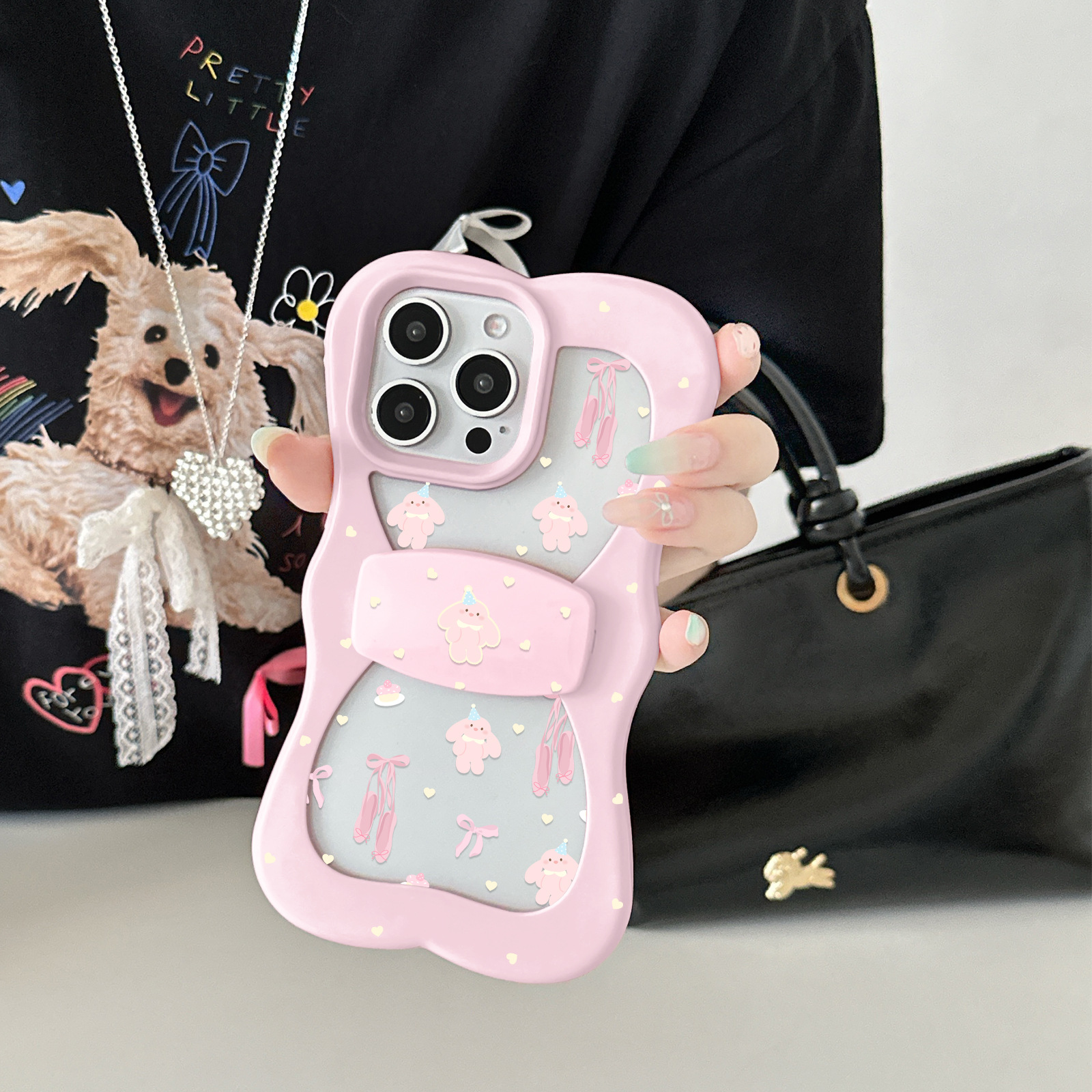 带帽小兔ins风蝴蝶结支架适用苹果16/15iphone13PROMAX手机壳小众