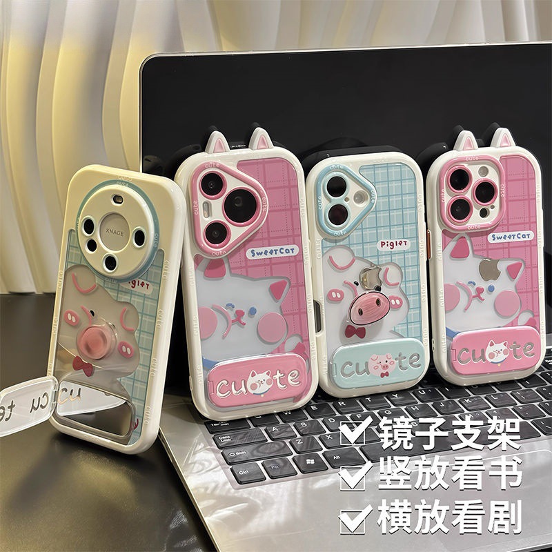 かわいい子猫と豚 Huawei mate60pro 携帯電話ケースに適したオールインクルーシブ pura70/nova14 Honor 落下防止