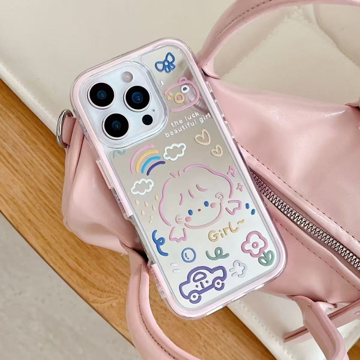ラインガールミラー Apple 16 携帯電話 15iphone13PROMAX Huawei Xiaomi 14 携帯電話ケースに適しています