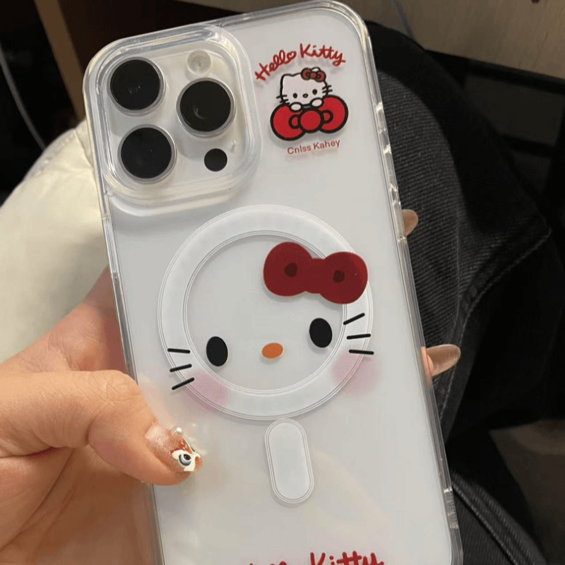 かわいいkt猫はリンゴ16マグネットアニメ透明携帯ケースiPhone14/13かわいい12/15転倒防止を適用している