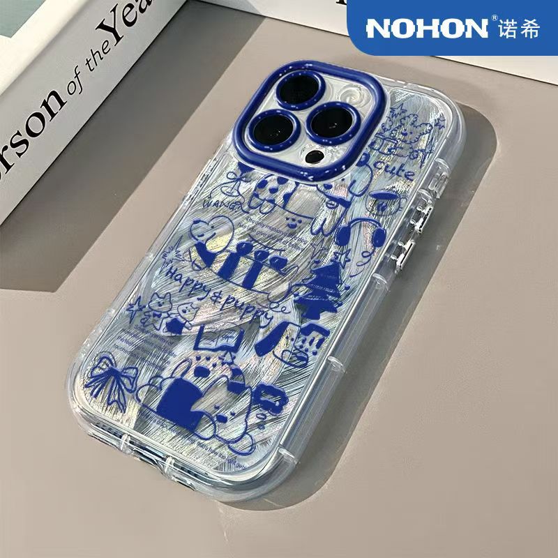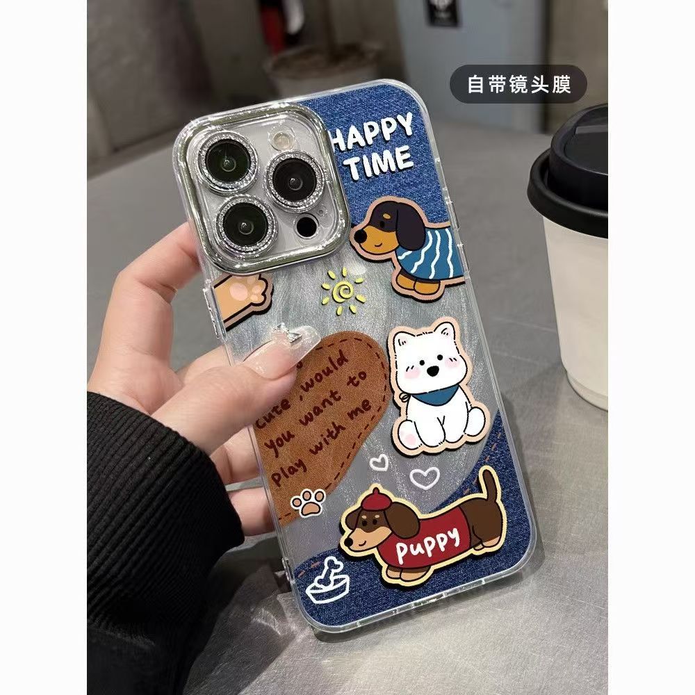 青い線の犬はリンゴ16/15華為栄光米携帯ケース13promax全包転倒防止に適している