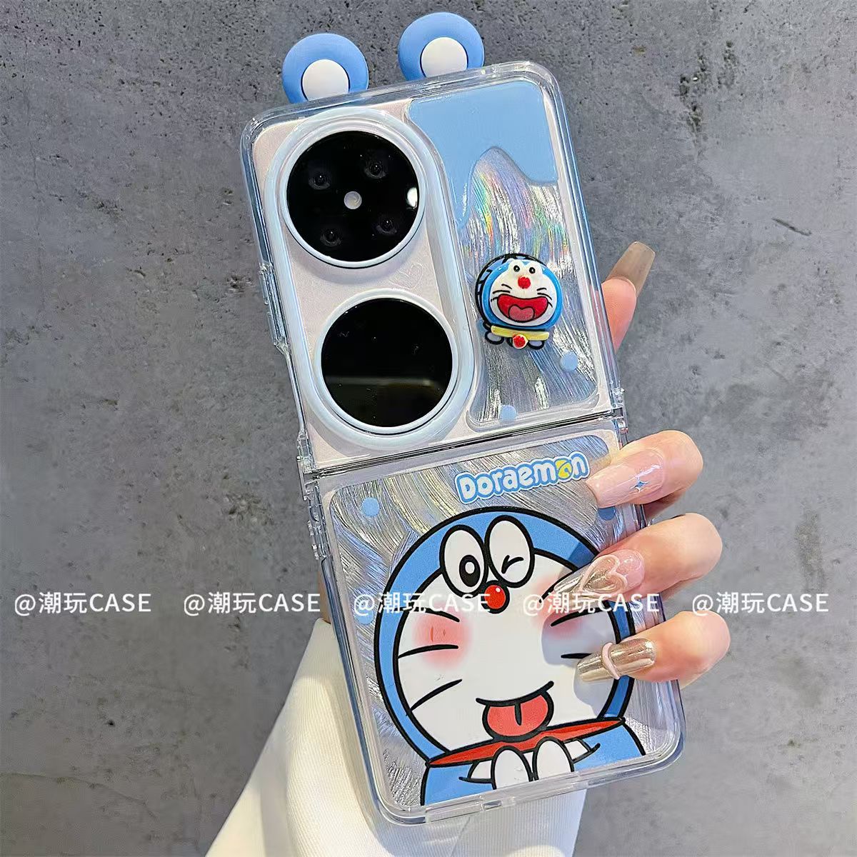 ドラえもんのウィニーは華を適用してポケットの米oppoの携帯電話のサムスンのZFLIPの折り畳みの携帯電話のケースの羽の糸を使います。