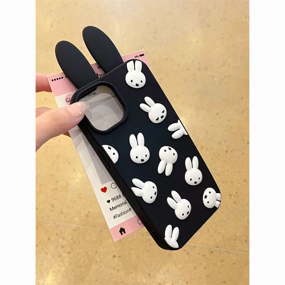 米菲兎ins立体アニメはiphone16 promaxアップルの携帯ケースのシリコンゴム14proの転倒防止ケースを適用します。