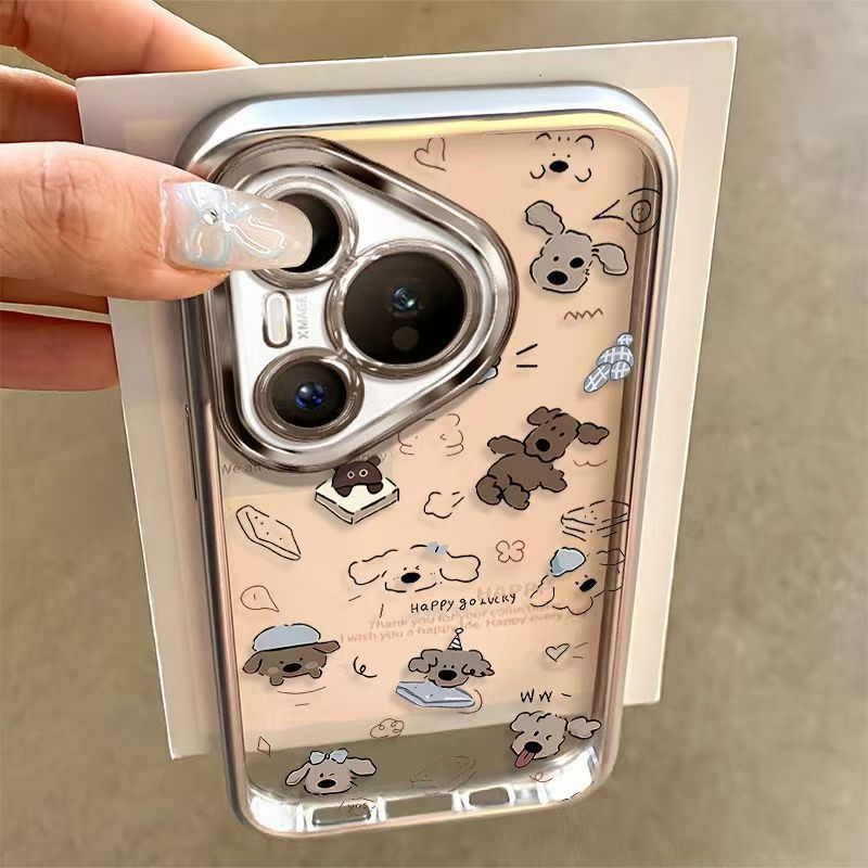 フルスクリーン子犬はiPhone15promax携帯ケースリンゴ15メッキ銀13かわいい14/12全包を適用する