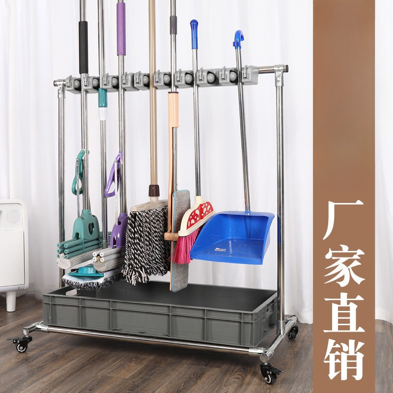 床置きステンレス製のハンガーは穴を開けない移動式モップ掃除機のモップ棚を移動可能にします。