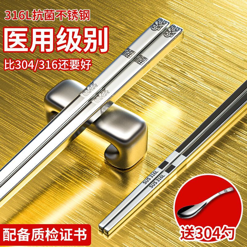 316Lステンレス箸304家庭用食器セット滑り止め防かび全家族福家庭快子