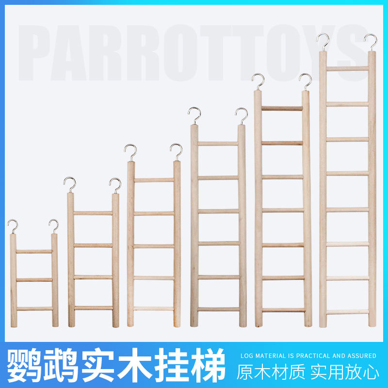鳥はおもちゃのブランコの階段ではしごを登ります。