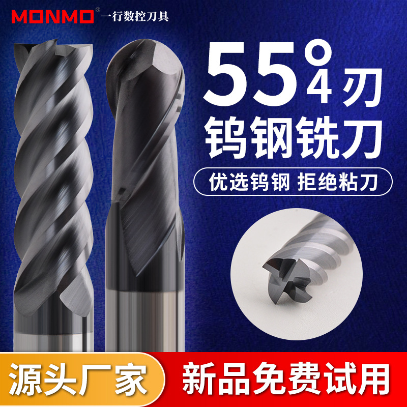 55 度タングステン鋼フライスカッター 4 ブレード超硬コーティングされた拡張タングステン鋼ナイフ CNC ツールエンドミル