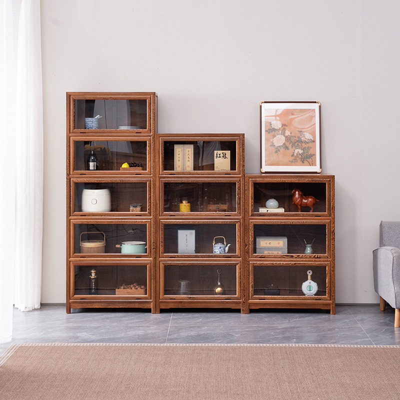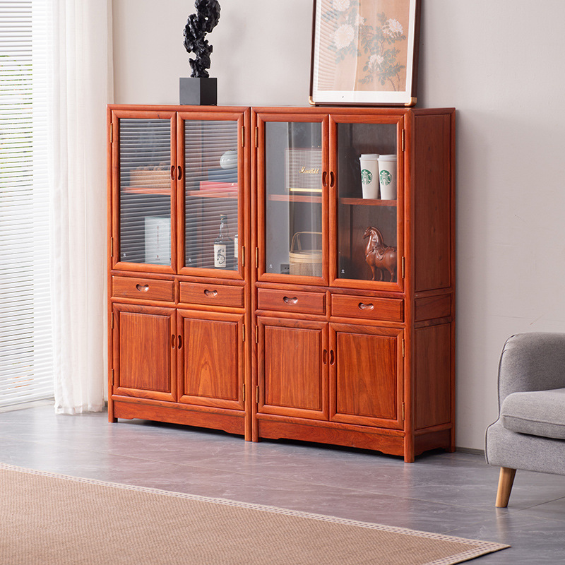 芸銘の天下の鶏の羽の木の食事のサイドのキャビネットの低いキャビネットの赤い木の組み合わせのキャビネットの新しい中国式のガラスの扉の本の食器棚