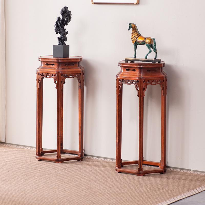 芸銘天下紅木家具ミャンマー花梨木六角形花架全実木花瓶架客間置物棚