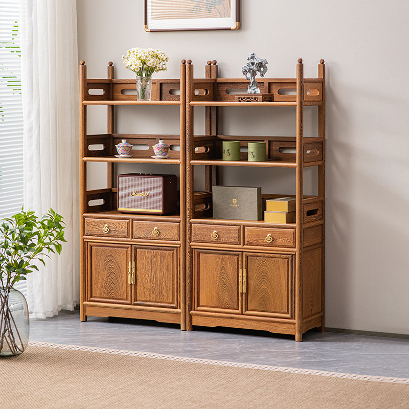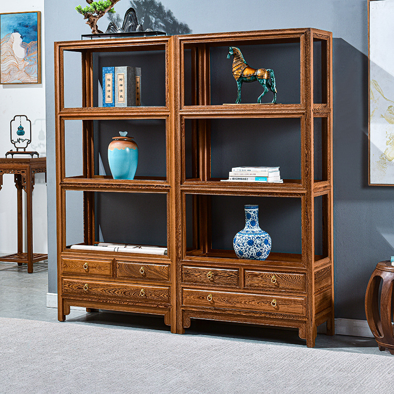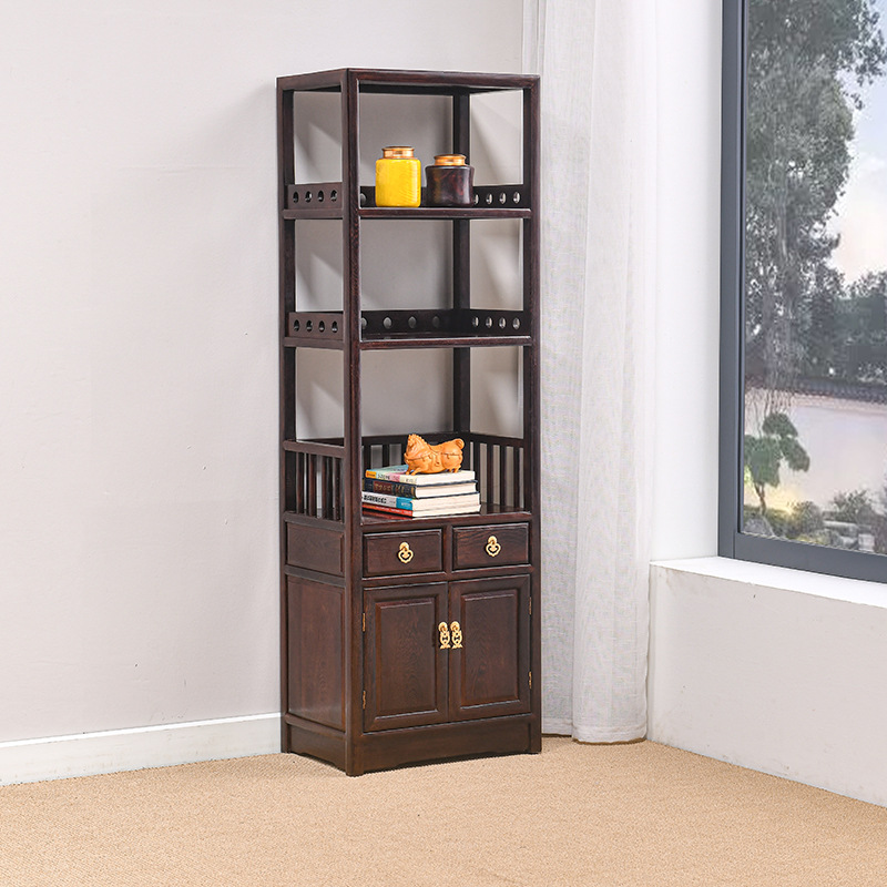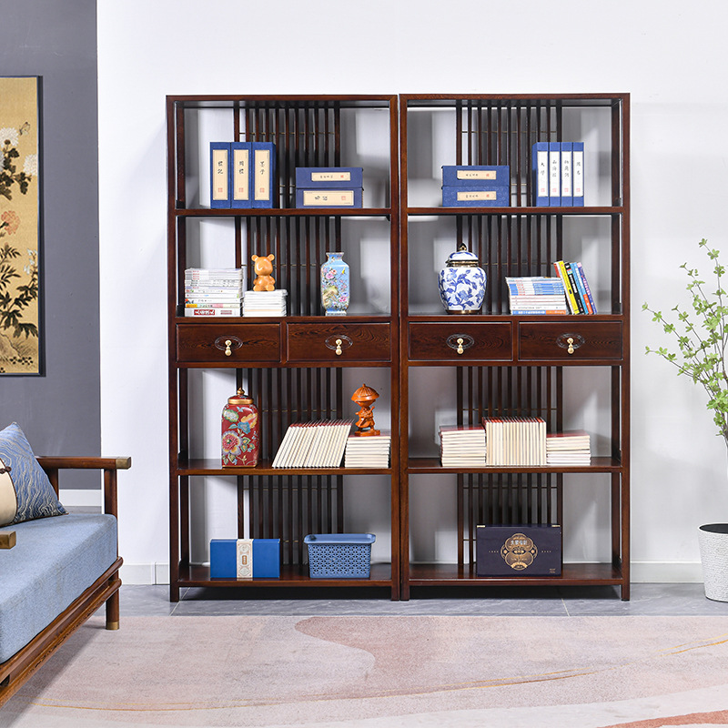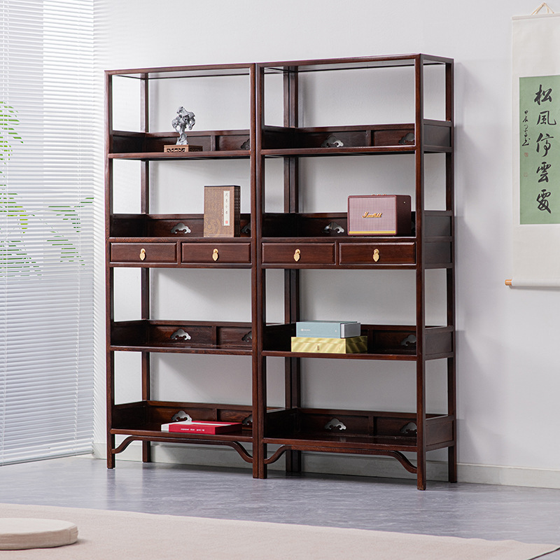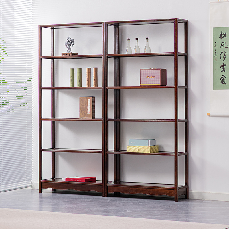 黒胡桃木色手羽木本棚新中国式実木本棚展示棚赤木棚客間玄関