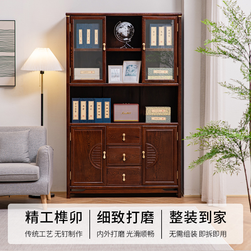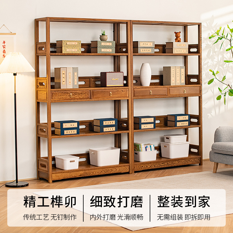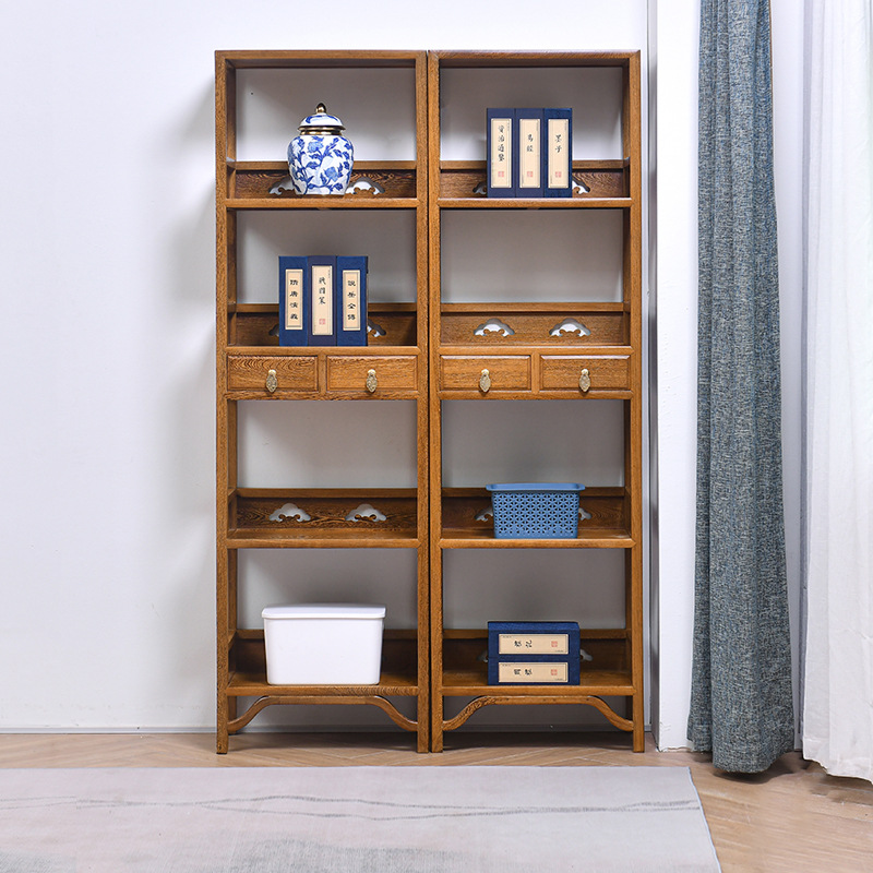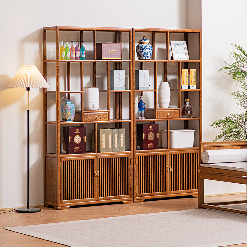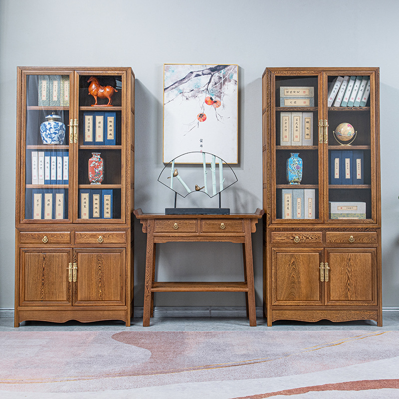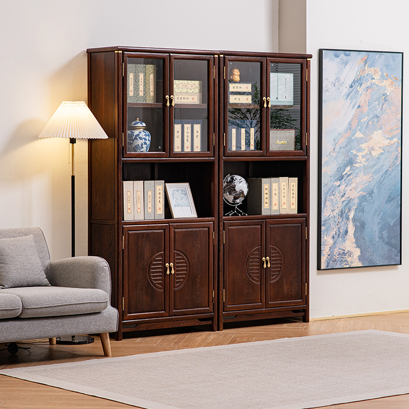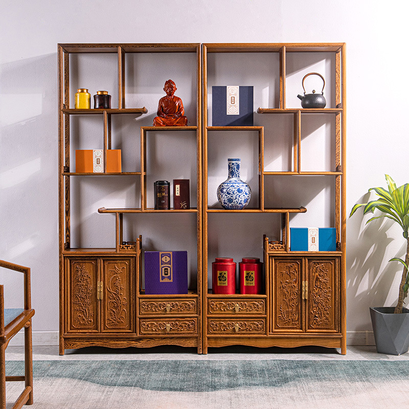黒胡桃木色手羽木本棚新中国式実木本棚展示棚赤木棚客間玄関