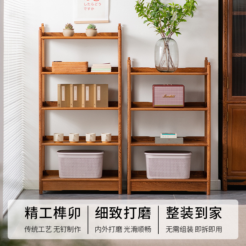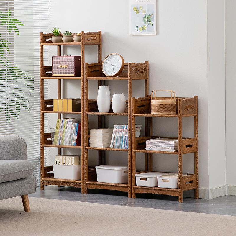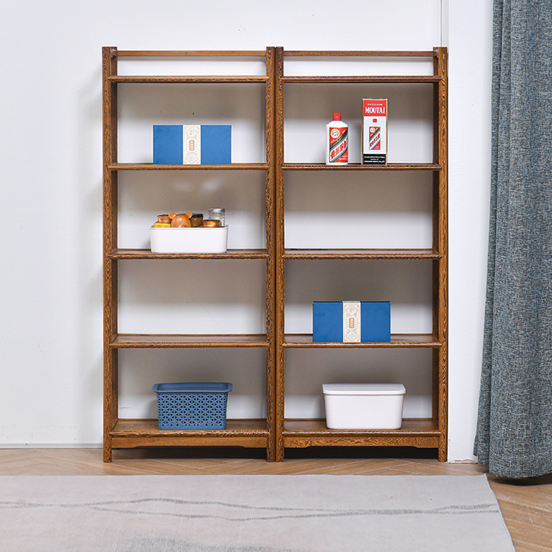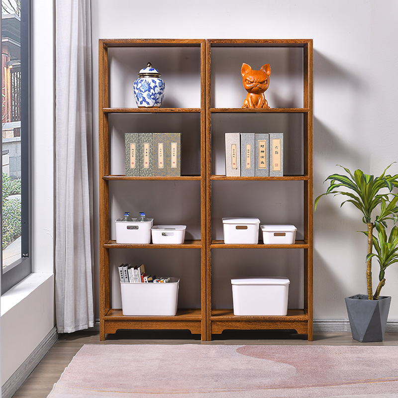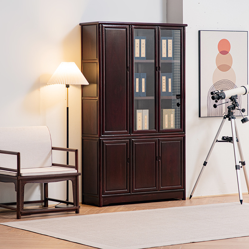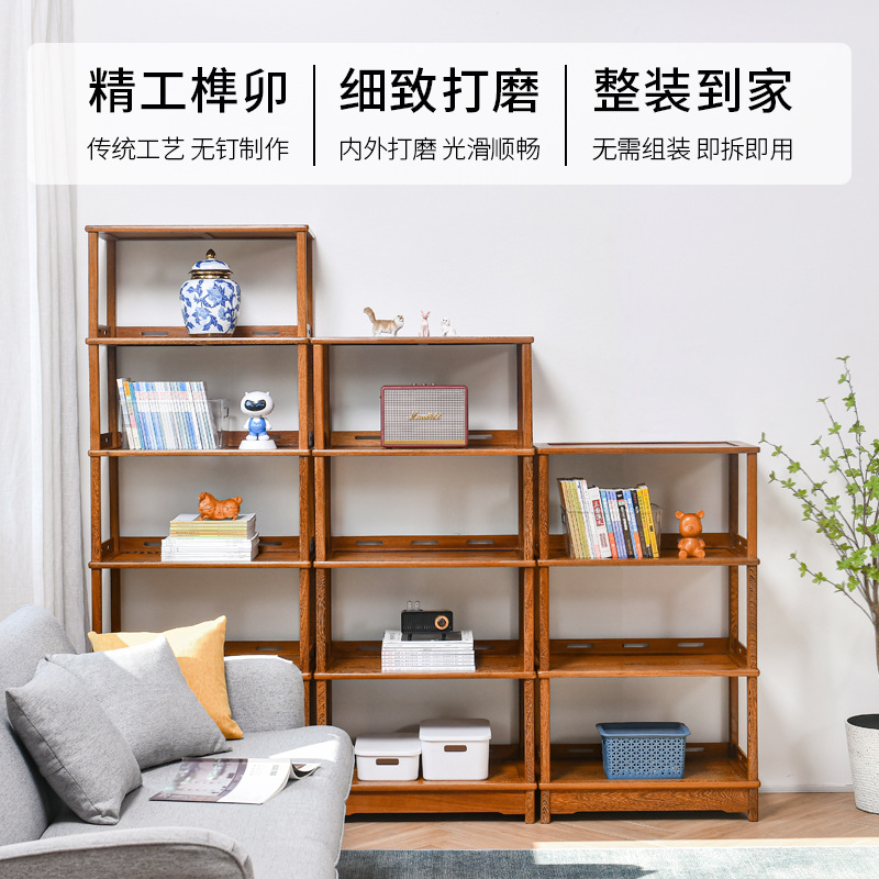 黒胡桃木色本棚手羽木全実木棚中国式展示棚着地小戸型本棚赤木