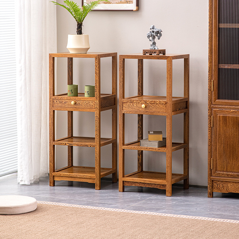 鶏の羽の木の小さい本棚の赤い木の新しい中国式のお茶の戸棚の辺のいくつかの実木の食事のサイドの棚は物を置く棚が軽くて豪華です。