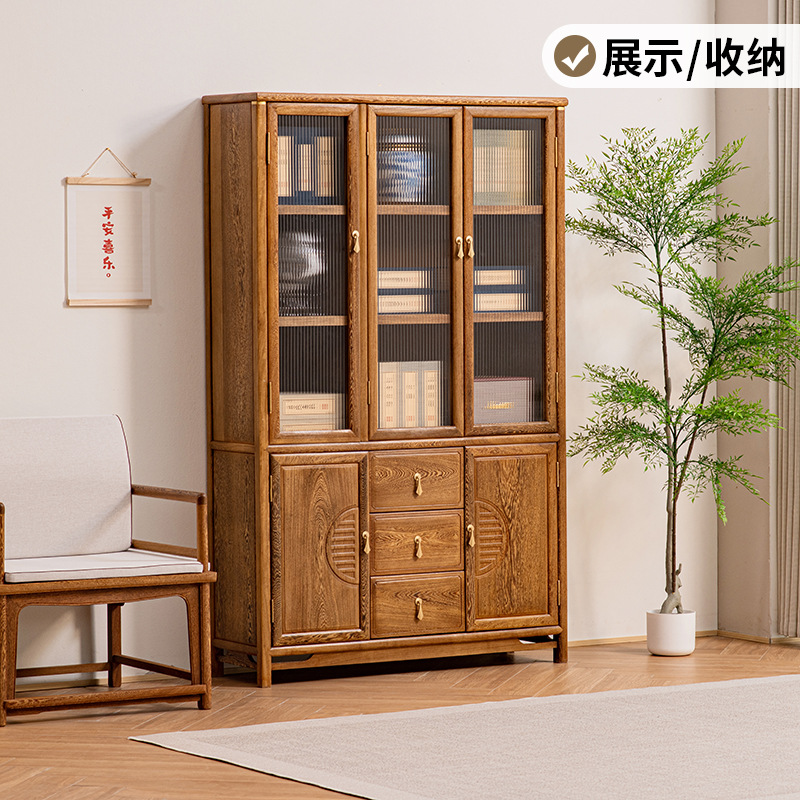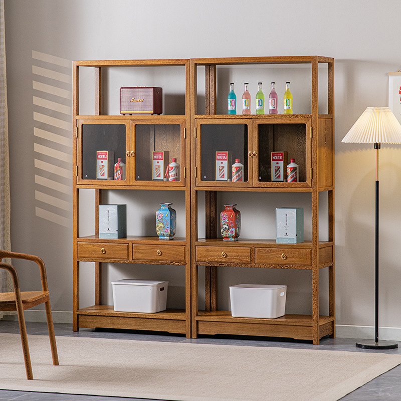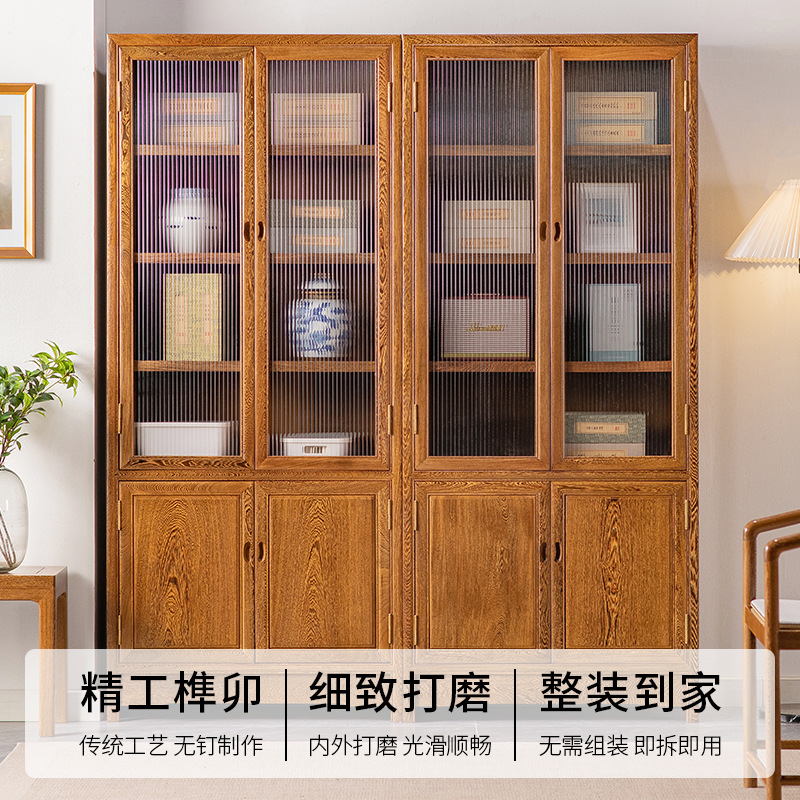赤木家具手羽木書斎本棚ロッカー実木中国式本棚オフィスガラス扉本棚